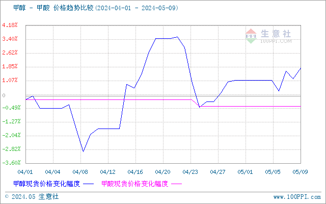 據(jù)生意社商品行情分析系統(tǒng),截止到5月9日國內工業(yè)級85%甲酸企業(yè)報價均價為3287.50元/噸,較周一價格相比,基本持平。